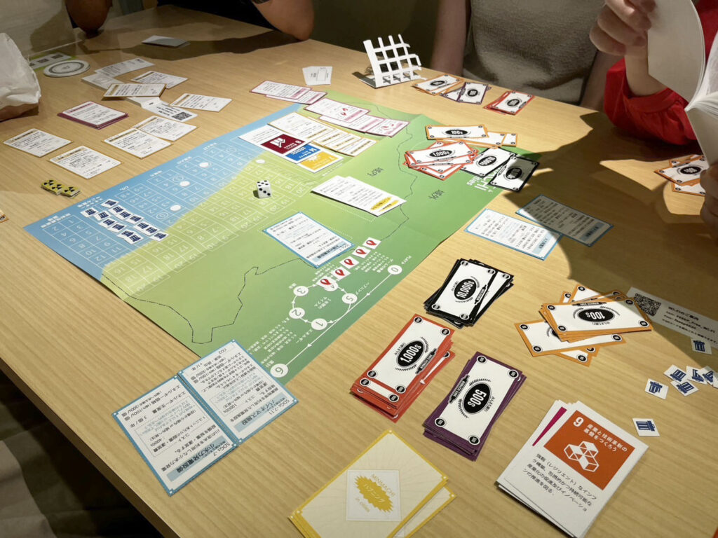 自分たちが住みたいと思える「まち」を実現するために、参加者同士で話し合いながらアクションを行い、まちの変化を買想定に体験することができるゲームです。