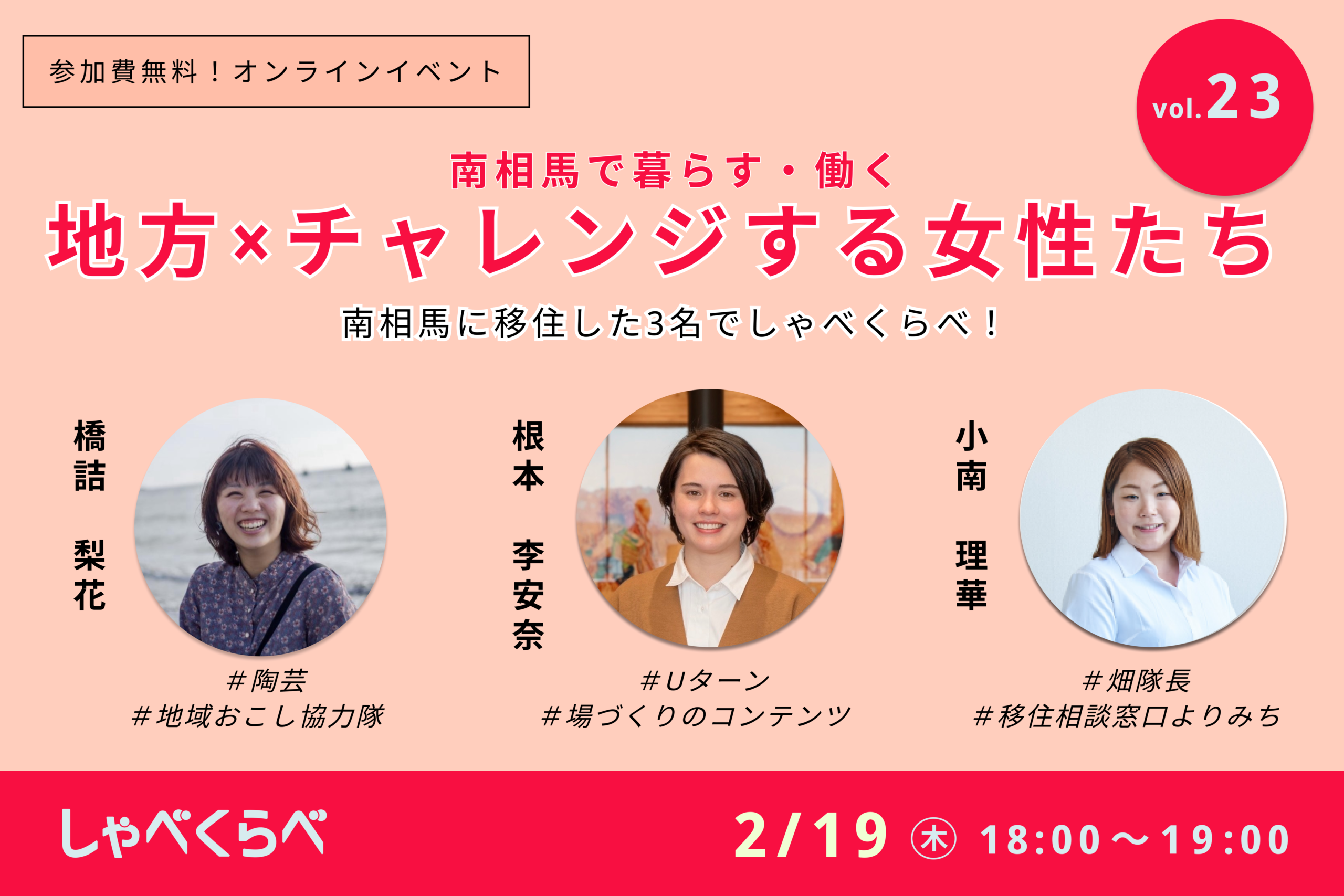 2月19日|しゃべくらべ Vol.23|南相馬で暮らす・働く。地方×チャレンジする女性たち